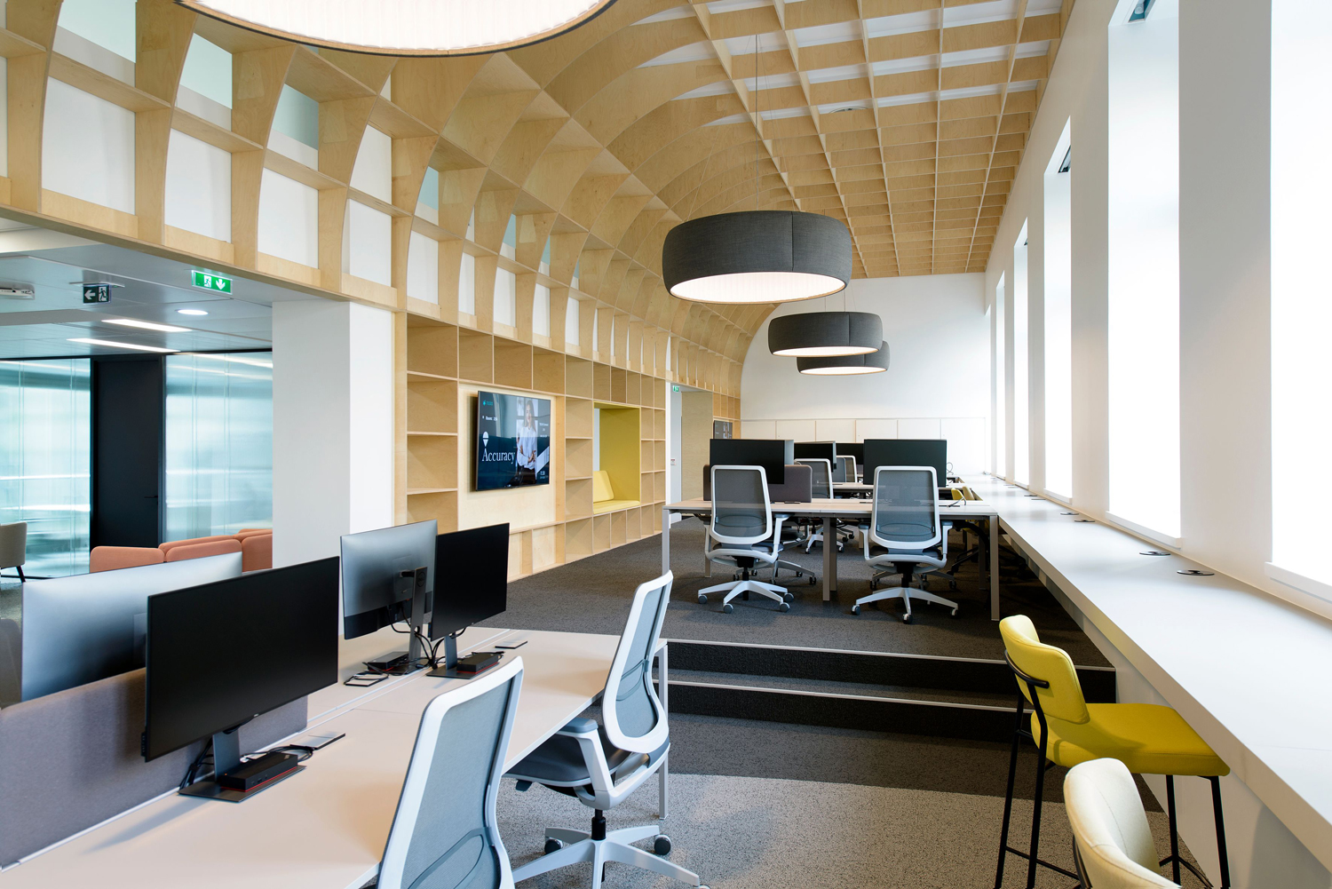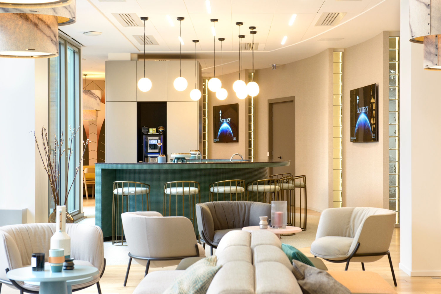 Cabinet de conseil financier, Accuracy installe son siège social avenue Matignon à Paris sur 3000m². Les espaces de travail s’articulent autour de l’espace client ainsi qu’un « working lounge » de 300 m² qui offre aux collaborateurs un lieu convivial, dynamique et qualitatif.