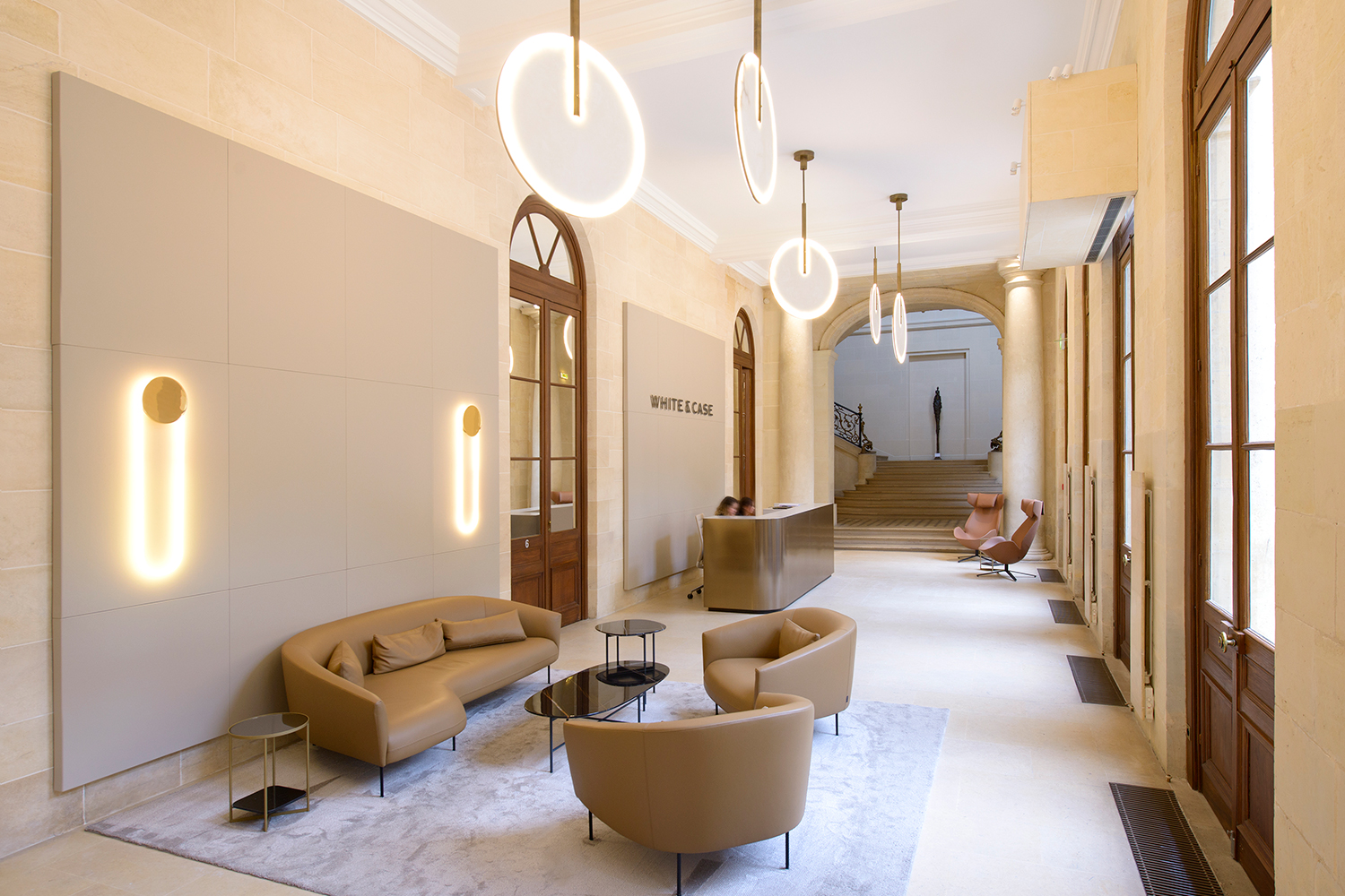 Cabinet d’avocats international, White and Case sollicite Shift In comme AMO pour revaloriser les espaces clients de son siège historique de 1500 m² place Vendôme. Il se compose d’une surface d’accueil, de salle de réunions, de galeries de réception, d’un espace fitness et d’un lounge restauration pour les collaborateurs.